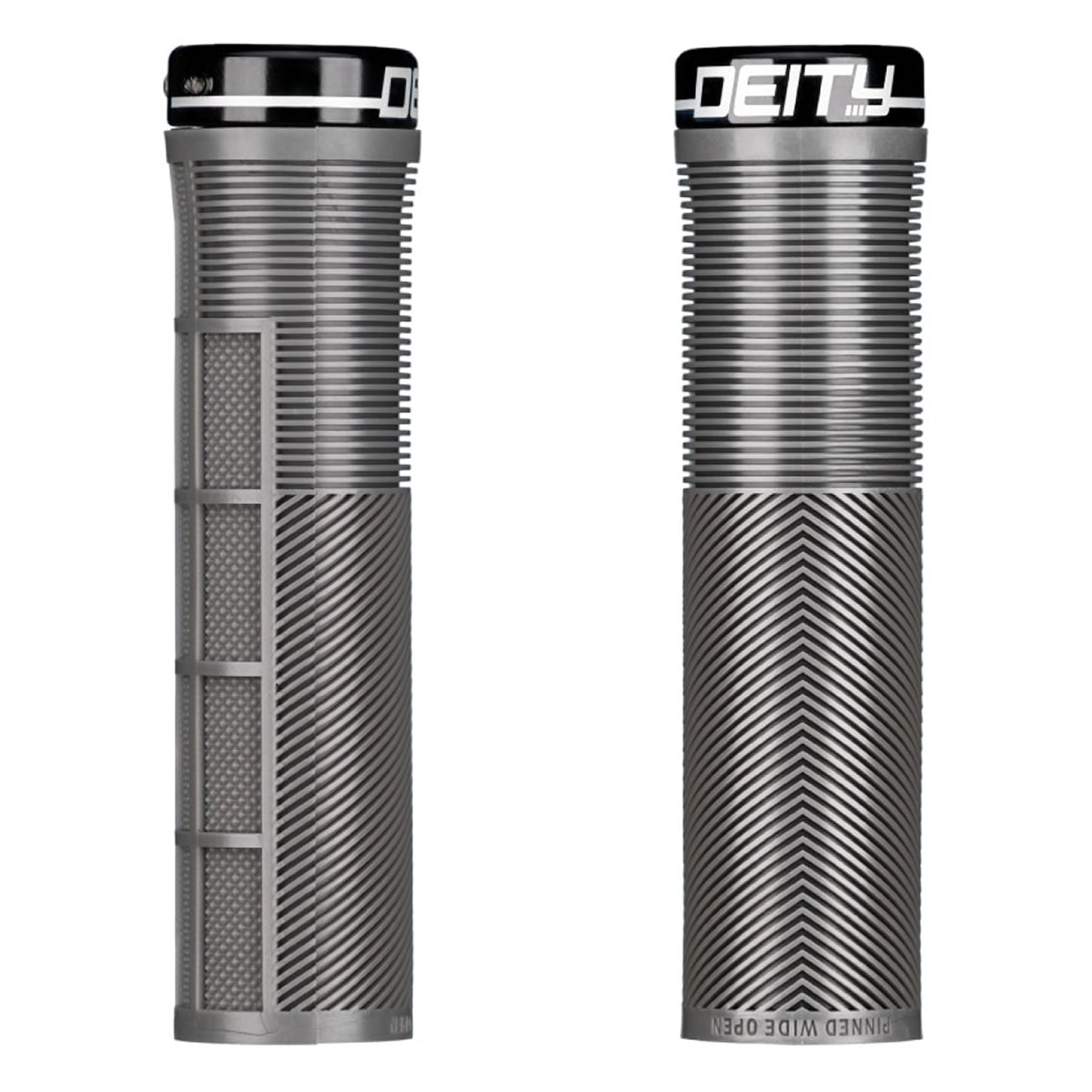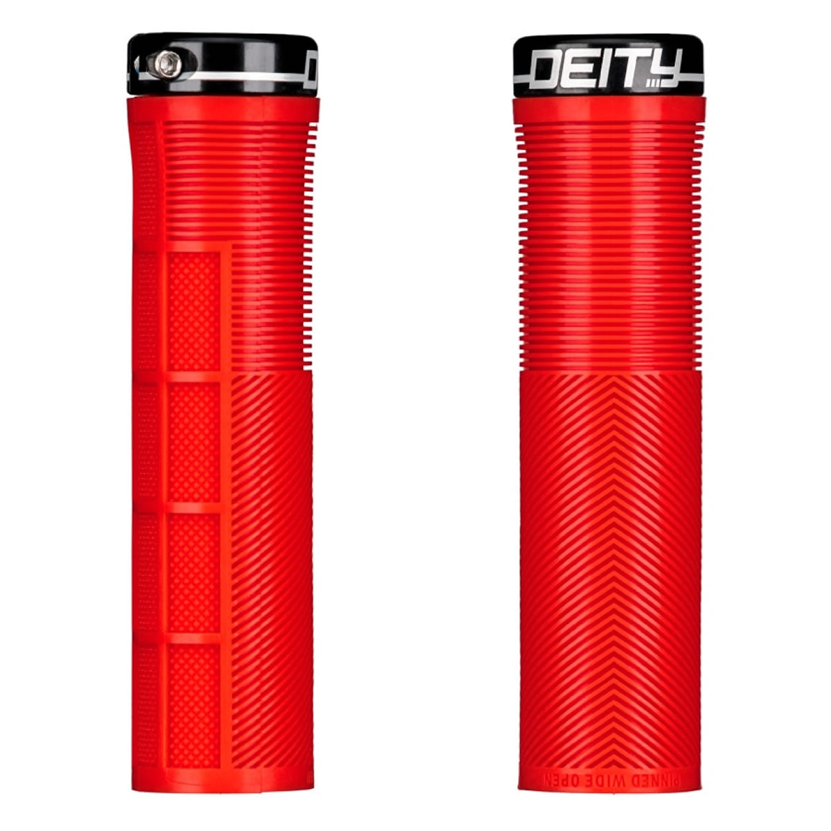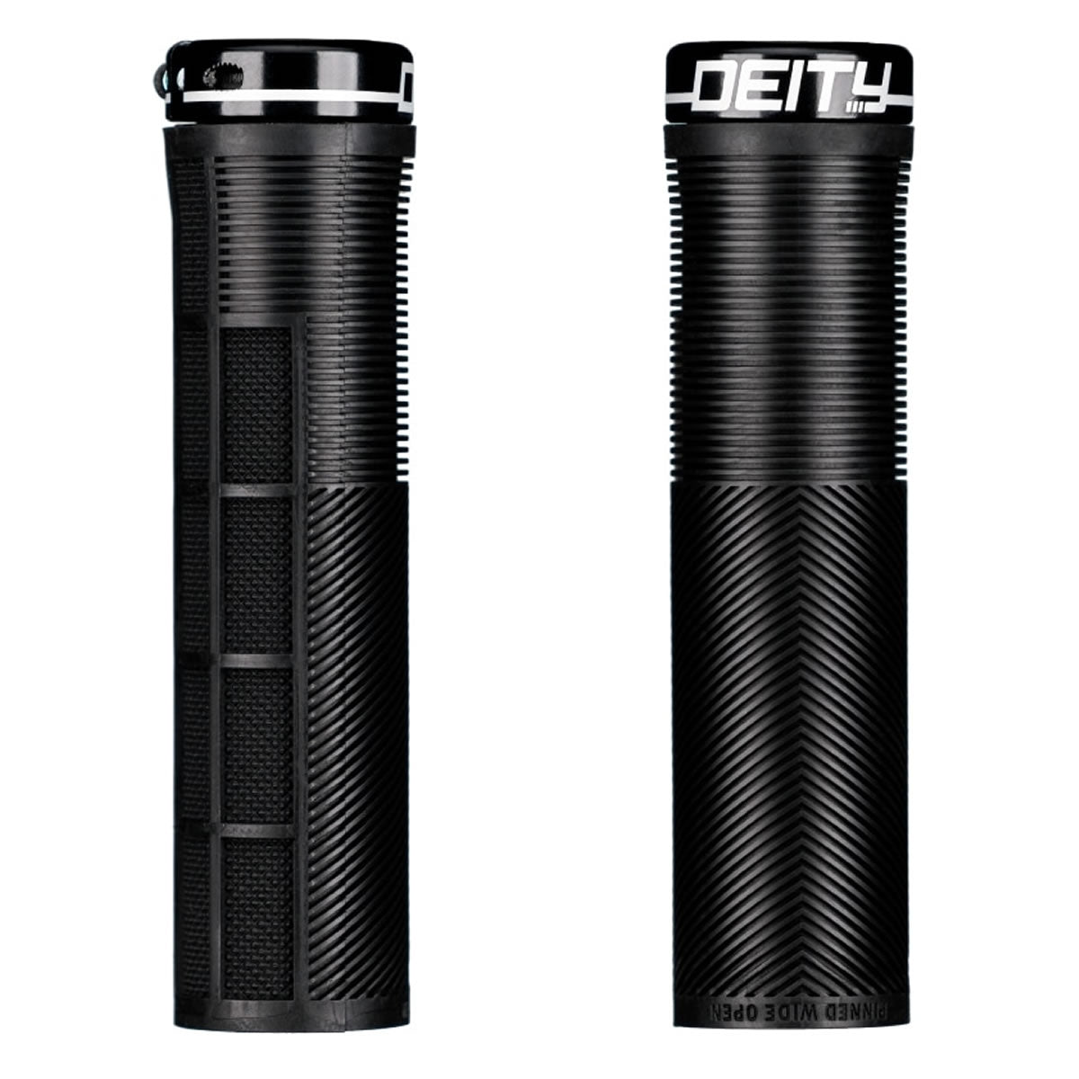 The grip of choice for World Cup style assassin and gloveless wonder, Sam Blenkinsop, the KNUCKLEDUSTER embodies our attention to detail and our focus on function! Taking a risk and thinking outside the box is where DEITY thrives and these are certainly case in point! Not only have we developed our TRC rubber blend that gives you remarkable grip with incredible durability, the KNUCKLEDUSTER also features a tapered internal sleeve that you have to tap onto your handlebar for full engagement. This tapered sleeve feels like it is already locked into place once fully tapped onto the bar and coupled with a single bolt lock-on clamp, you will not develop any play. The body of the MTB grip combines the best elements of a half-waffle, mushroom ribbing, and an ergo feel in a stunning package. Featuring a mushroom pattern to minimize vibration, the true magic of the KNUCKLEDUSTER lies in the V channel chevron ribs that ergonomically fill the swell of your palm and then seamlessly transition to a recessed half waffle on the underside. Why is this magic? All half waffle patterns are outboard and are notorious for creating hot spots on long rides. By designing the top to seamlessly transition to a recessed half waffle pattern, your fingers sit perfectly into the grip and allow you full control even in the roughest of conditions without being plagued by hot spots or blisters. The KNUCKLEDUSTER grips truly are an “all day grip” that allow you to keep it Pinned Wide Open at all times!