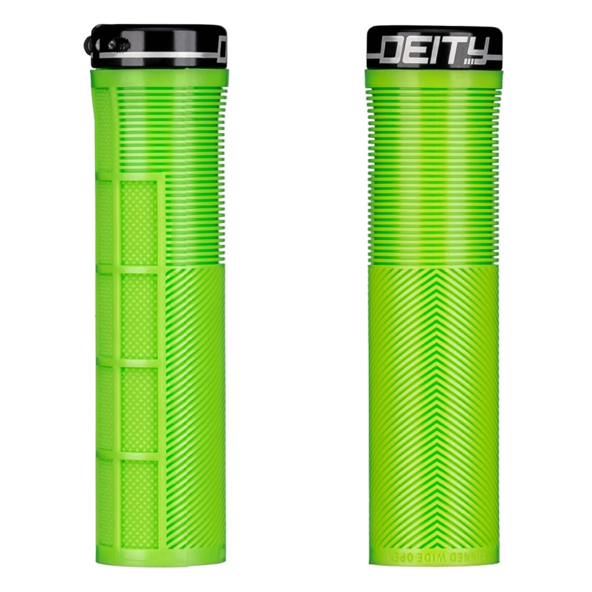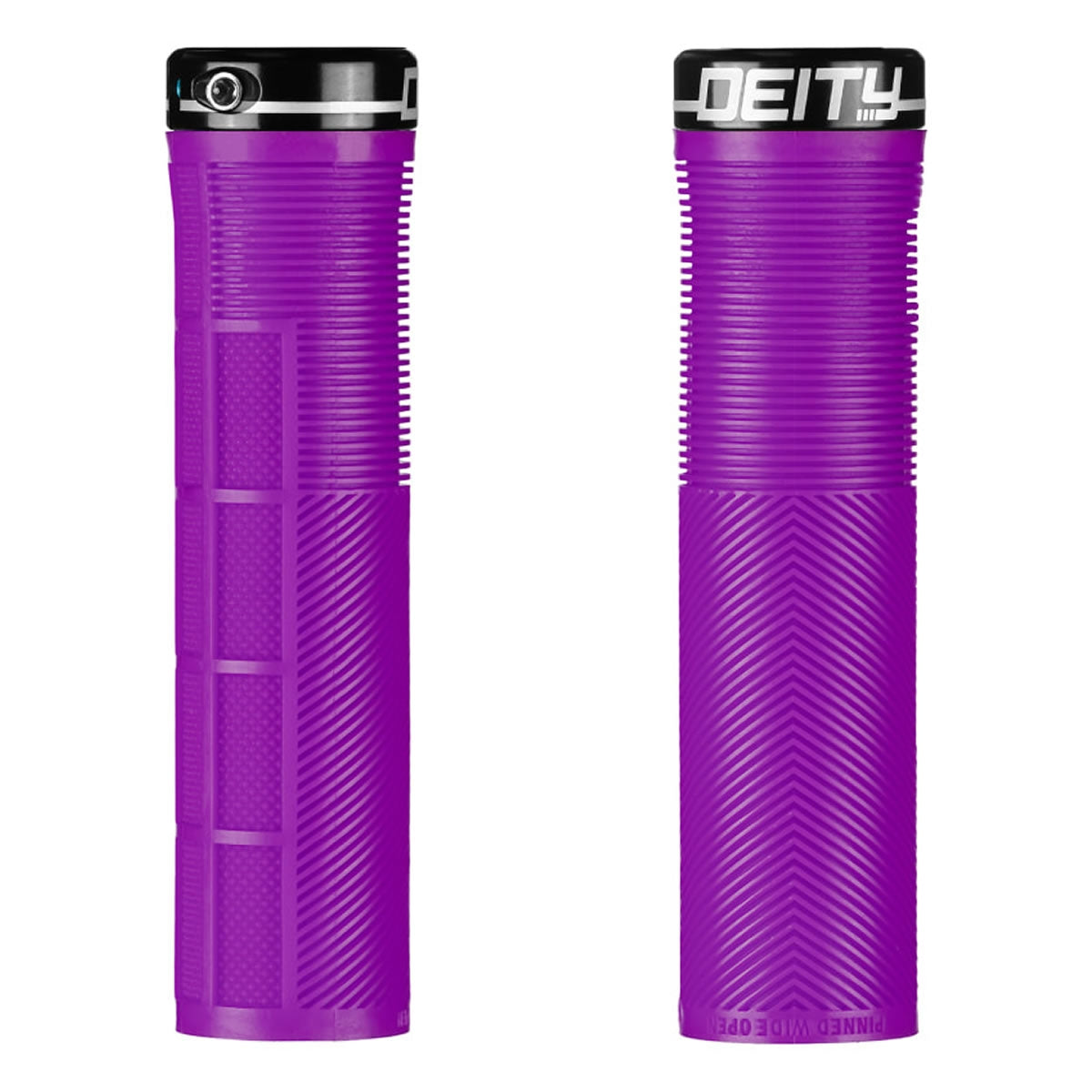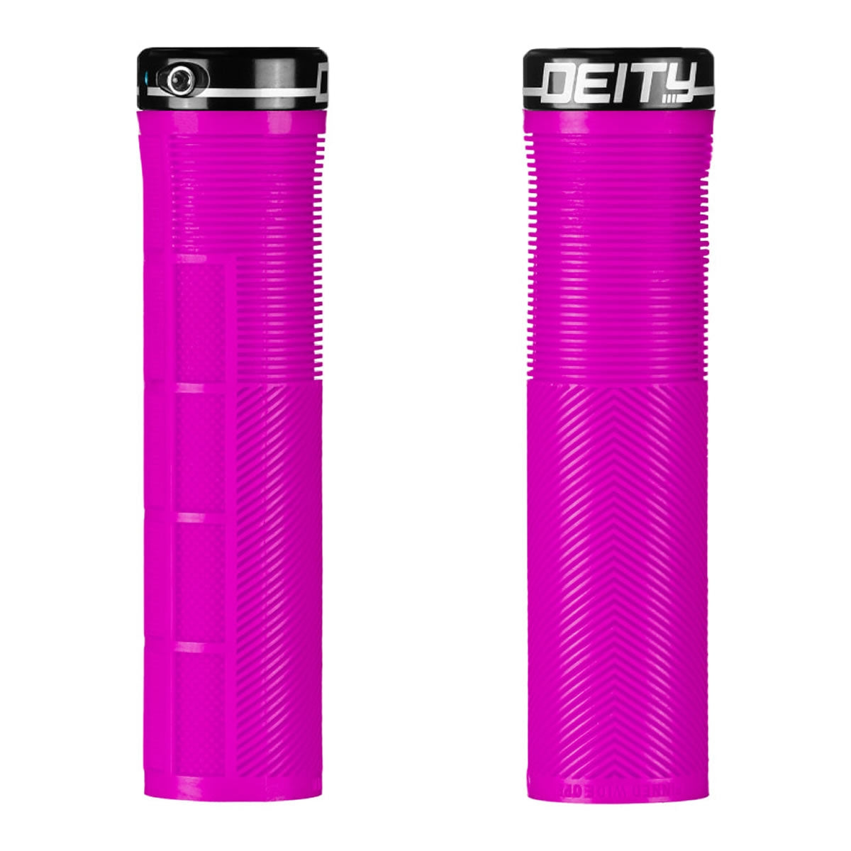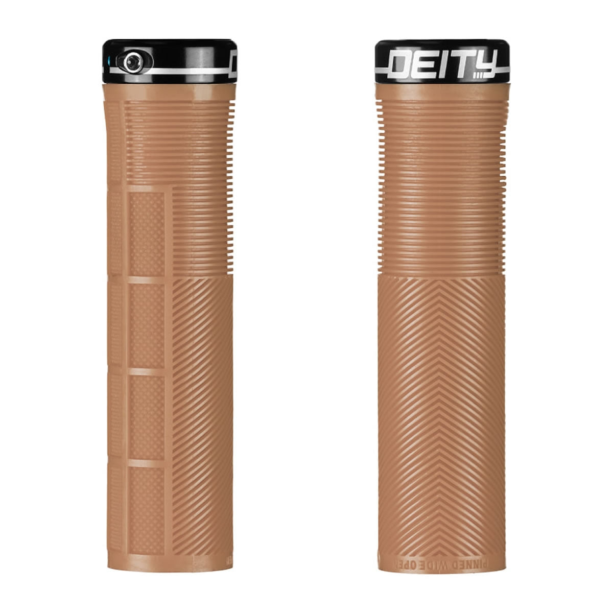 The grip of choice for World Cup style assassin and gloveless wonder, Sam Blenkinsop, the KNUCKLEDUSTER embodies our attention to detail and our focus on function! Taking a risk and thinking outside the box is where DEITY thrives and these are certainly case in point! Not only have we developed our TRC rubber blend that gives you remarkable grip with incredible durability, the KNUCKLEDUSTER also features a tapered internal sleeve that you have to tap onto your handlebar for full engagement. This tapered sleeve feels like it is already locked into place once fully tapped onto the bar and coupled with a single bolt lock-on clamp, you will not develop any play. The body of the MTB grip combines the best elements of a half-waffle, mushroom ribbing, and an ergo feel in a stunning package. Featuring a mushroom pattern to minimize vibration, the true magic of the KNUCKLEDUSTER lies in the V channel chevron ribs that ergonomically fill the swell of your palm and then seamlessly transition to a recessed half waffle on the underside. Why is this magic? All half waffle patterns are outboard and are notorious for creating hot spots on long rides. By designing the top to seamlessly transition to a recessed half waffle pattern, your fingers sit perfectly into the grip and allow you full control even in the roughest of conditions without being plagued by hot spots or blisters. The KNUCKLEDUSTER grips truly are an “all day grip” that allow you to keep it Pinned Wide Open at all times!