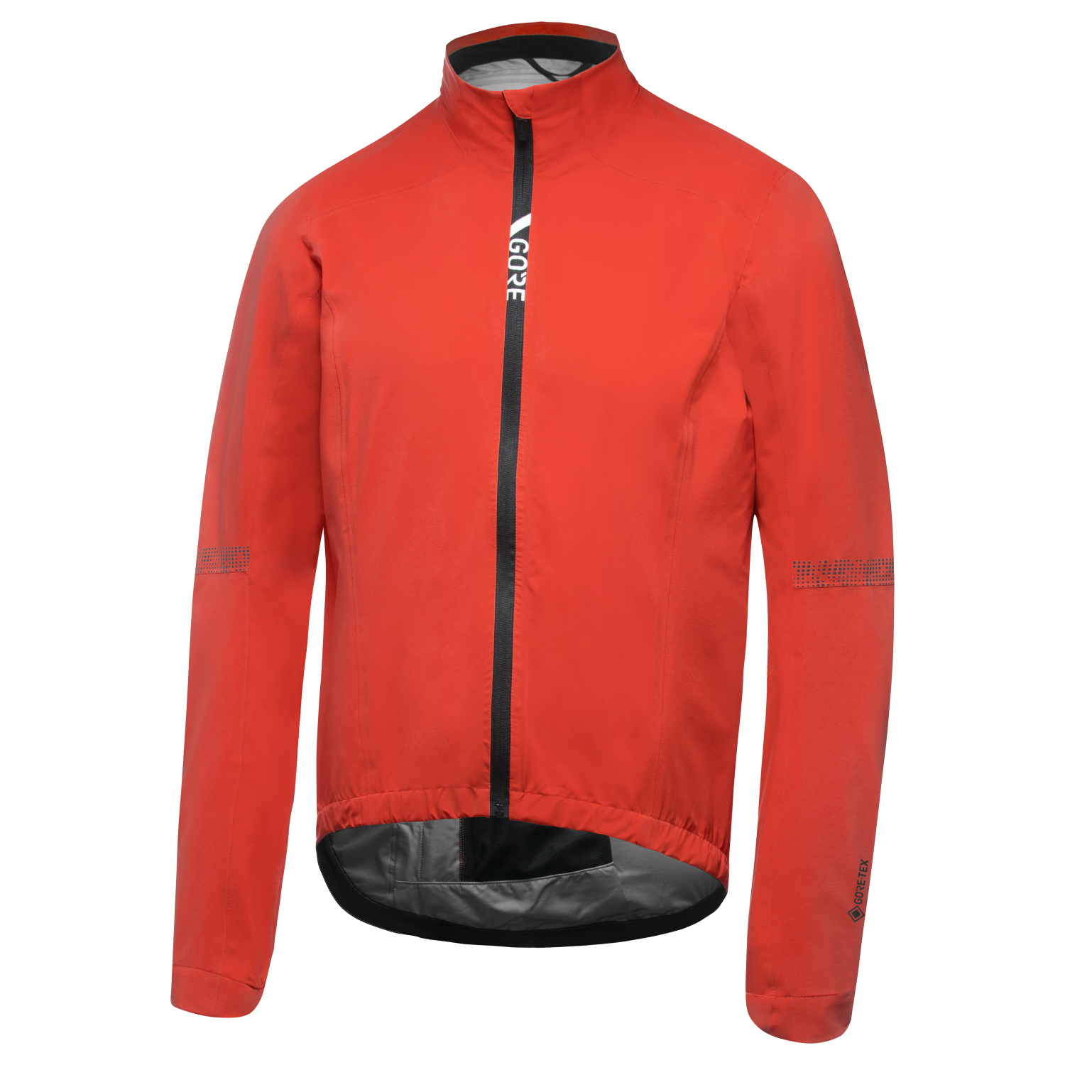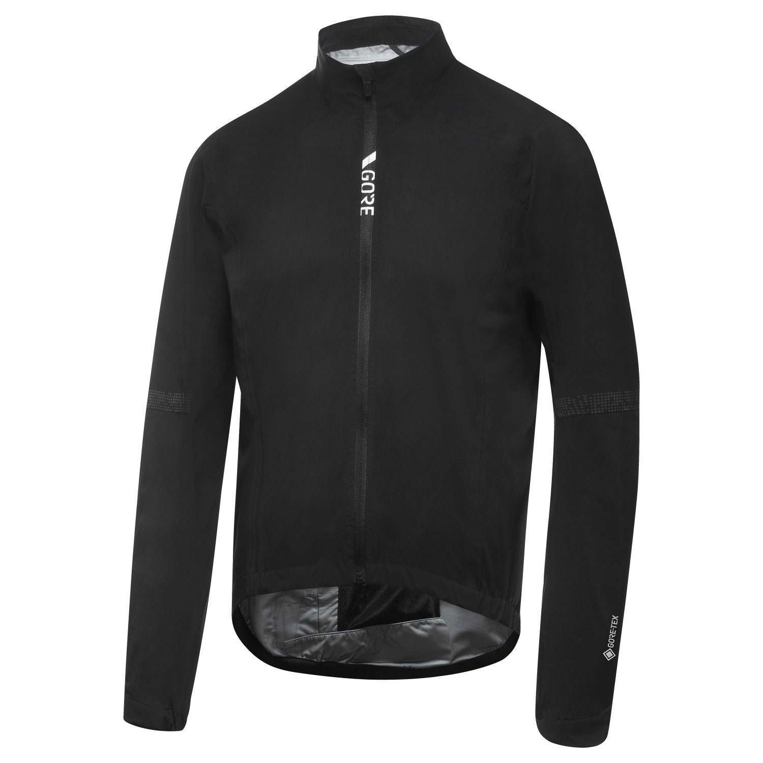 A race oriented, slim fitting, durably waterproof and highly breathable GORE-TEX jacket with an integrated stow pocket.